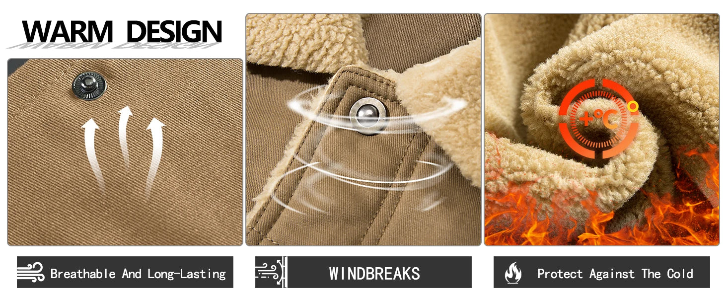 Faux Shearling Lining:Enjoy the warmth and comfort of shearling without the animal product with our faux shearling lining. It provides excellent insulation to keep you cozy in cold weather.