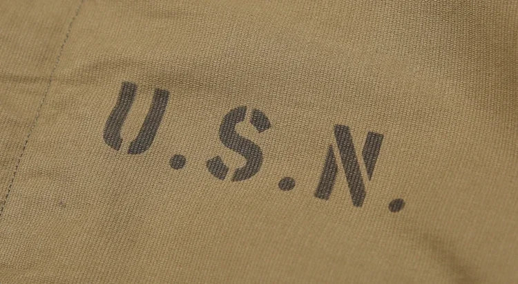 - Khaki and Army green one have the U.S.N. stencil on the front chest, and don't have the back stencil on the back